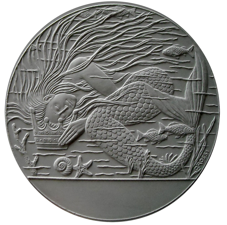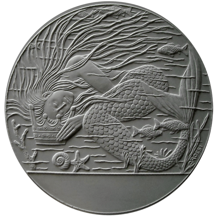 La Sirenetta di Christian Andersen, recto di modello in gesso per la realizzazione di medaglia coniata in argento. Committente: ditta danese, 2010