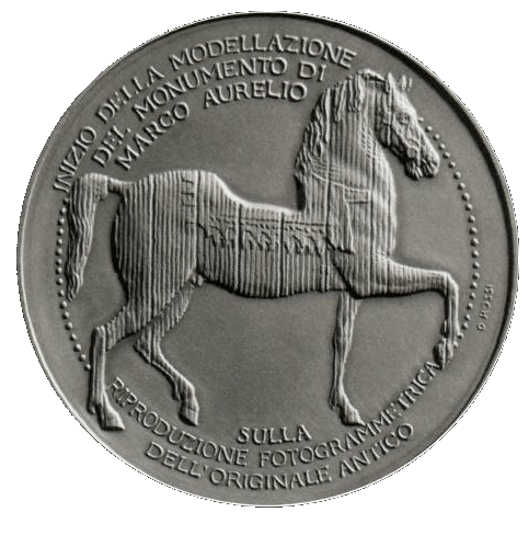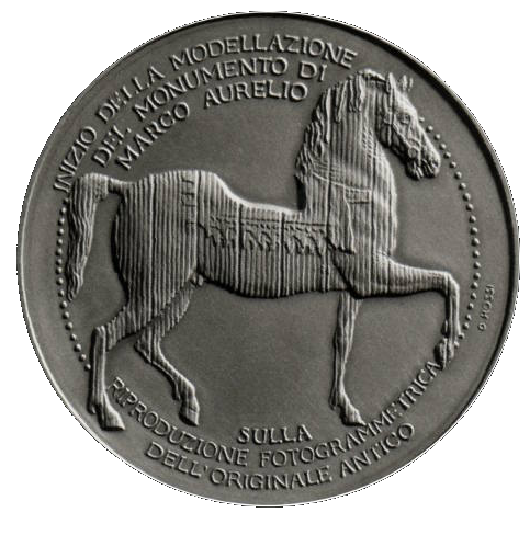 Recto di modello in gesso per la medaglia di bronzo coniato, relizzata in occasione dell’inizio della copia della statua equestre di Marco Aurelio. Committente: Comune di Roma, 1995