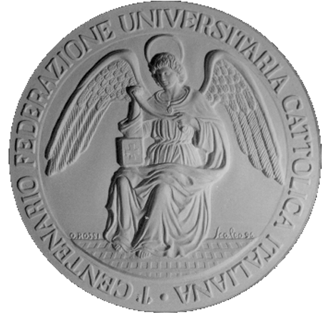 Recto di modello in gesso per la medaglia di bronzo coniato. Commitente: F.U.C.I. Federazione Universitaria Cattolica Italiana, 1996