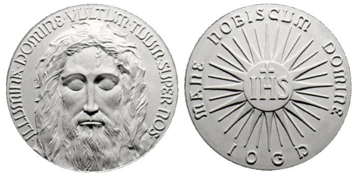 Recto/verso di modello in gesso per medaglie di bronzo.