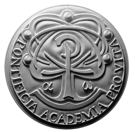 Verso di modello in gesso per la realizzazione di medaglie coniate in bronzo, realizzata per la PONTIFICIA ACCADEMIA PRO VITA. Committente: Città del Vaticano, 2017